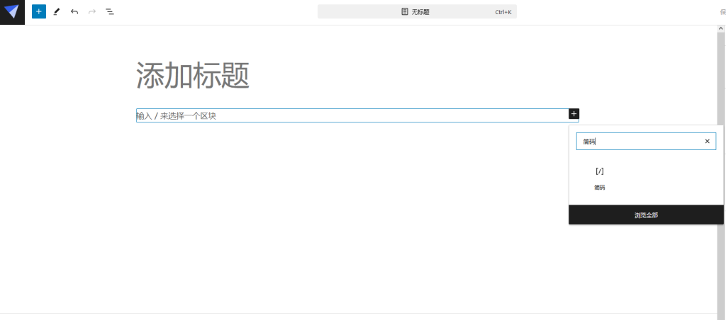 1.新建页面,并点击黑色 + 号,搜索 ‘简码’,点击‘简码’并使用。